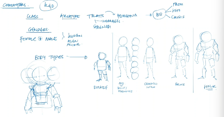 It's important to explore everything that is related to the design of the character, from the body type to the outfit and props the character carries.